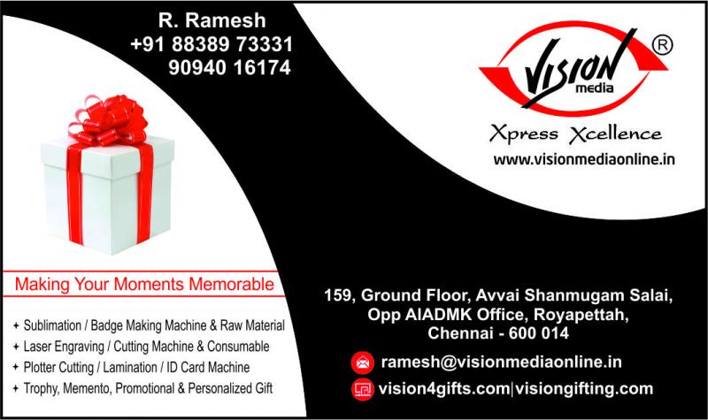 Welcome to Vision Media Calcutta Pvt. Ltd. is one of the trusted manufacturers and suppliers of Sublimation Printing Machines, Laser Engraving/Cutting Machine, Cutting Plotter, Mobile Cover Printing Machine, since 1988. Our product range is Sublimation Raw Materials, Trophies & Mementos and Personalized Gifts. Our products are manufactured using high-quality raw material sourced from the reliable vendors. Moreover, designing, production, packaging, quality checking and other processes are carried on with the aid of modern equipment and the latest technology. We offer the new design and patterns in our range of these products from time to time to enable a spacious choice and acceptance of our honored clients. Our products are widely demanded in the market because of their peerless quality and long term durability.